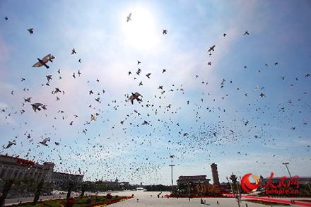 喝彩:和平鴿放飛希望