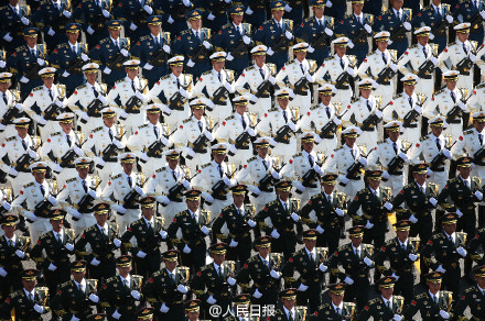中國閱兵史上的首次設(shè)置合唱團(tuán),一千多名隊(duì)員全部由總裝、海軍、空軍所屬院校的學(xué)員組成,為網(wǎng)友們奉獻(xiàn)了“霸氣的現(xiàn)場(chǎng)演唱會(huì)”。