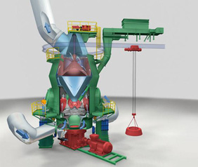 煤立磨機由電動機驅(qū)動,通過行星減速機帶動磨煤機磨盤轉動,磨盤上的2-4個磨輥在磨盤的帶動下轉動,經(jīng)落煤管進來的原煤分布在磨盤上,由于液壓加載力的作用,磨輥與磨盤之間產(chǎn)生擠壓使大顆粒原煤被壓碎。靠磨輥與磨盤的相對運動產(chǎn)生的滑動摩擦力實現(xiàn)小顆粒煤被碾碎;原煤在磨內(nèi)被碾磨的同時,被通入立磨機的熱風(一般在300℃以下)烘干掉原煤的水分,達到成品煤粉規(guī)定的要求;碾磨后的煤粉,通過一次風輸送進入分離器進行分離。分離出合格的煤粉被輸送至煤粉倉,不合格的粗煤粉返回到磨內(nèi)重新進行研磨。
