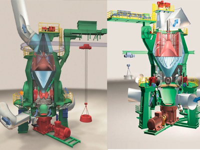 被粉碎的物料繼續(xù)向磨盤邊緣移動,直到被風環(huán)處的強氣流帶走,而較大的顆粒物料又重新掉落到磨盤上繼續(xù)粉碎,氣流中的物料經過上部的分離器時,在轉子葉片的作用下,粗顆粒重新回到磨盤上粉磨,合格的細粉隨氣流一起出磨,被系統(tǒng)的集粉器收集,被收集到的粉料即為立磨機磨出的產品。混入物料的鐵塊等雜物隨物料運動到磨盤邊緣時,由于自身重量大而不能被風吹起,跌落至磨機下腔被安裝在磨盤底部的刮料板刮入排渣口排出機外。通過調節(jié)多頭選粉機轉子的轉速,可以獲得不同細度的合格產品。通過調節(jié)液壓系統(tǒng)的壓力可以調節(jié)輥磨壓力,一定范圍內可以適應不同硬度的原料。