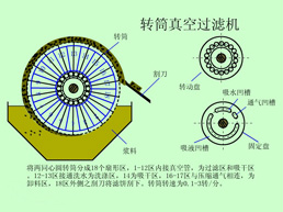 真空過濾機采用繞帶轉(zhuǎn)鼓真空過濾機可使濾布得到充分洗滌。如果懸浮液中的顆粒較重,沉降速度很快,則宜采用懸浮液在轉(zhuǎn)鼓上方加料的結(jié)構(gòu)或內(nèi)濾面轉(zhuǎn)鼓真空過濾機。如果懸浮液中的固體顆粒很細或形成可壓縮性濾渣,則應(yīng)在轉(zhuǎn)鼓過濾面上預(yù)先吸附一層固體助濾物,或在懸浮液中混入一定量的固體助濾物,使濾渣較為疏松,可提高過濾速度。